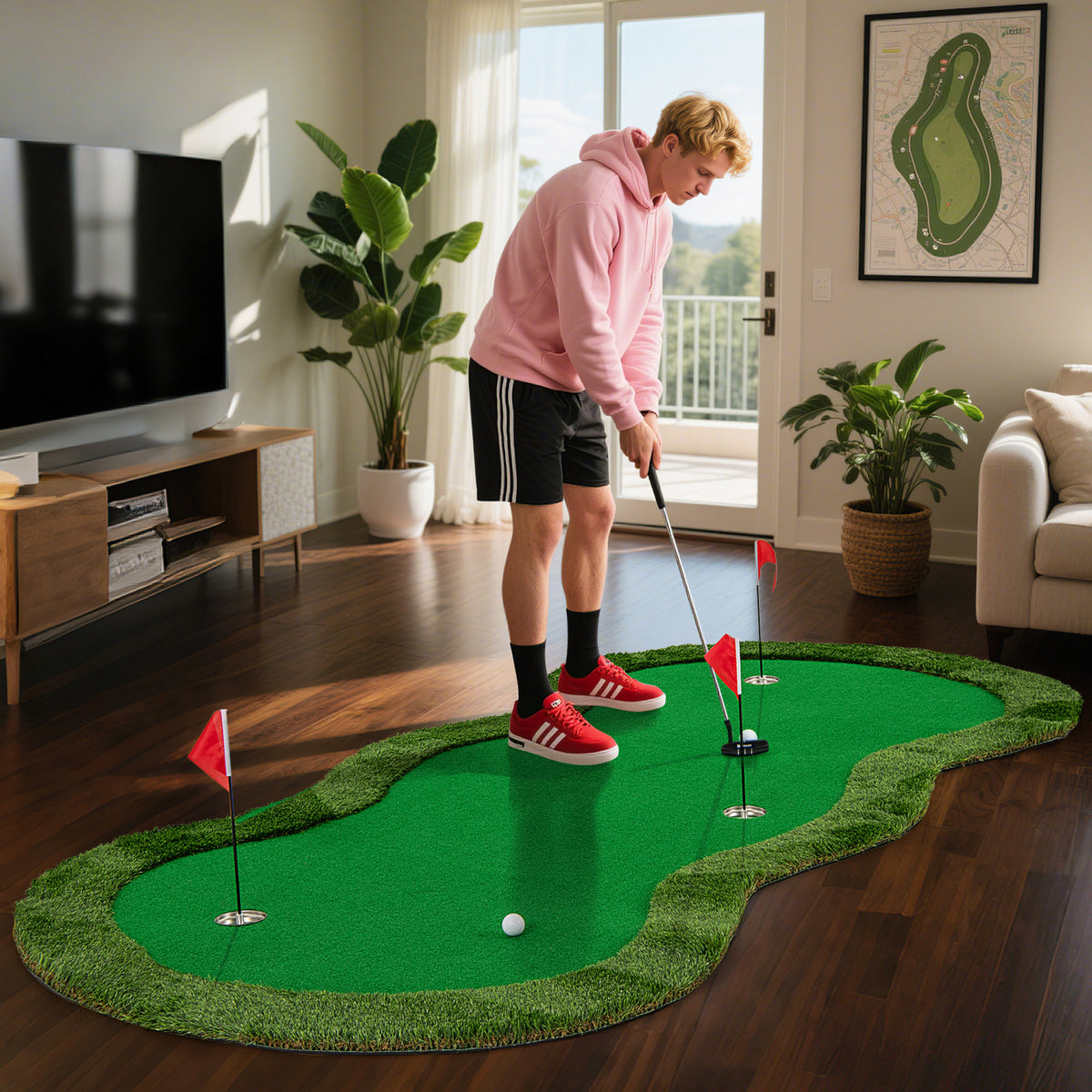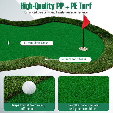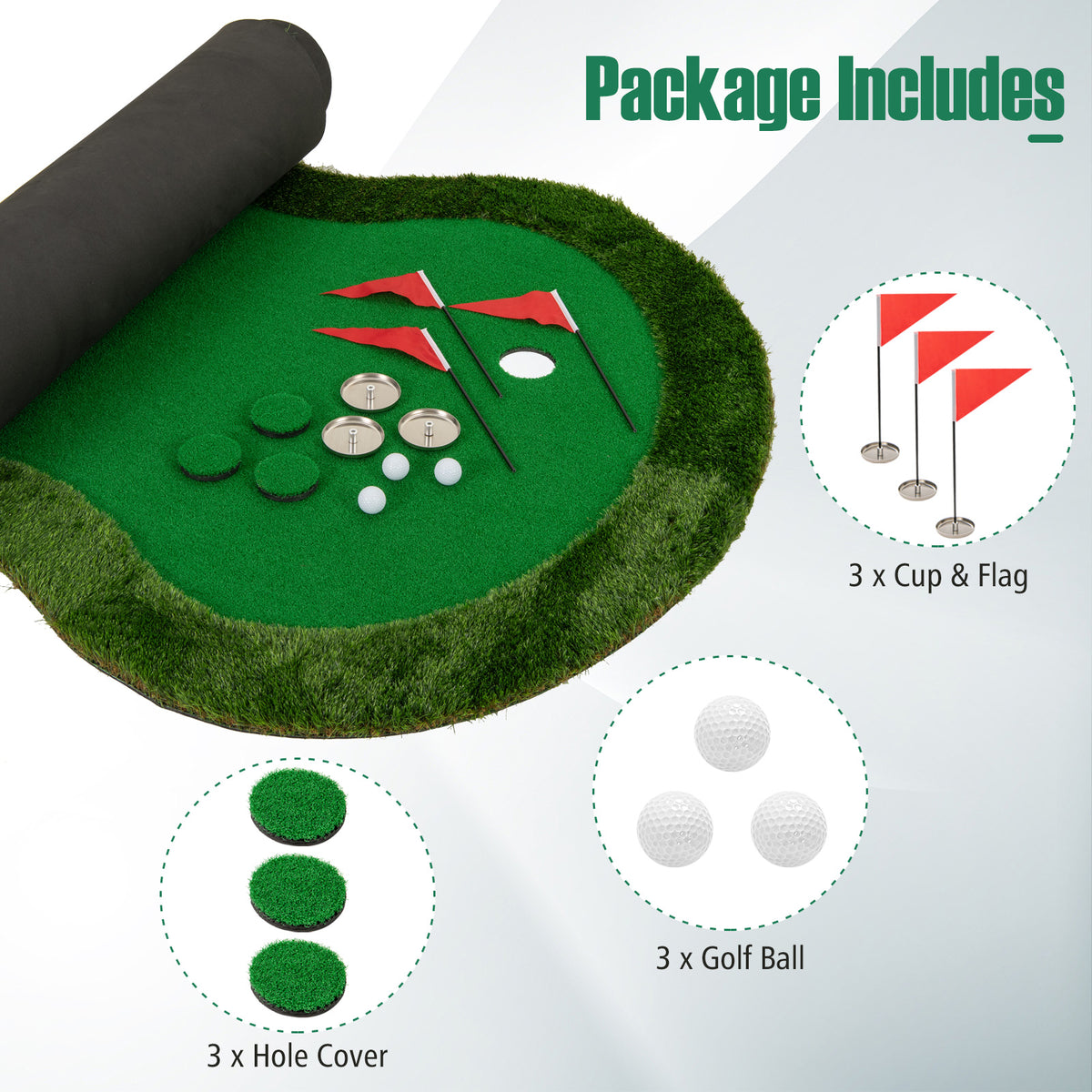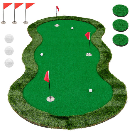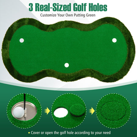 - Elevate Your Putting Game: Transform your practice into a pro-level experience with our 3-Hole Golf Putting Green, designed to mirror the authentic feel of a real golf course. Perfect your stroke anytime, anywhere, with a mat that combines realism, durability, and portability.