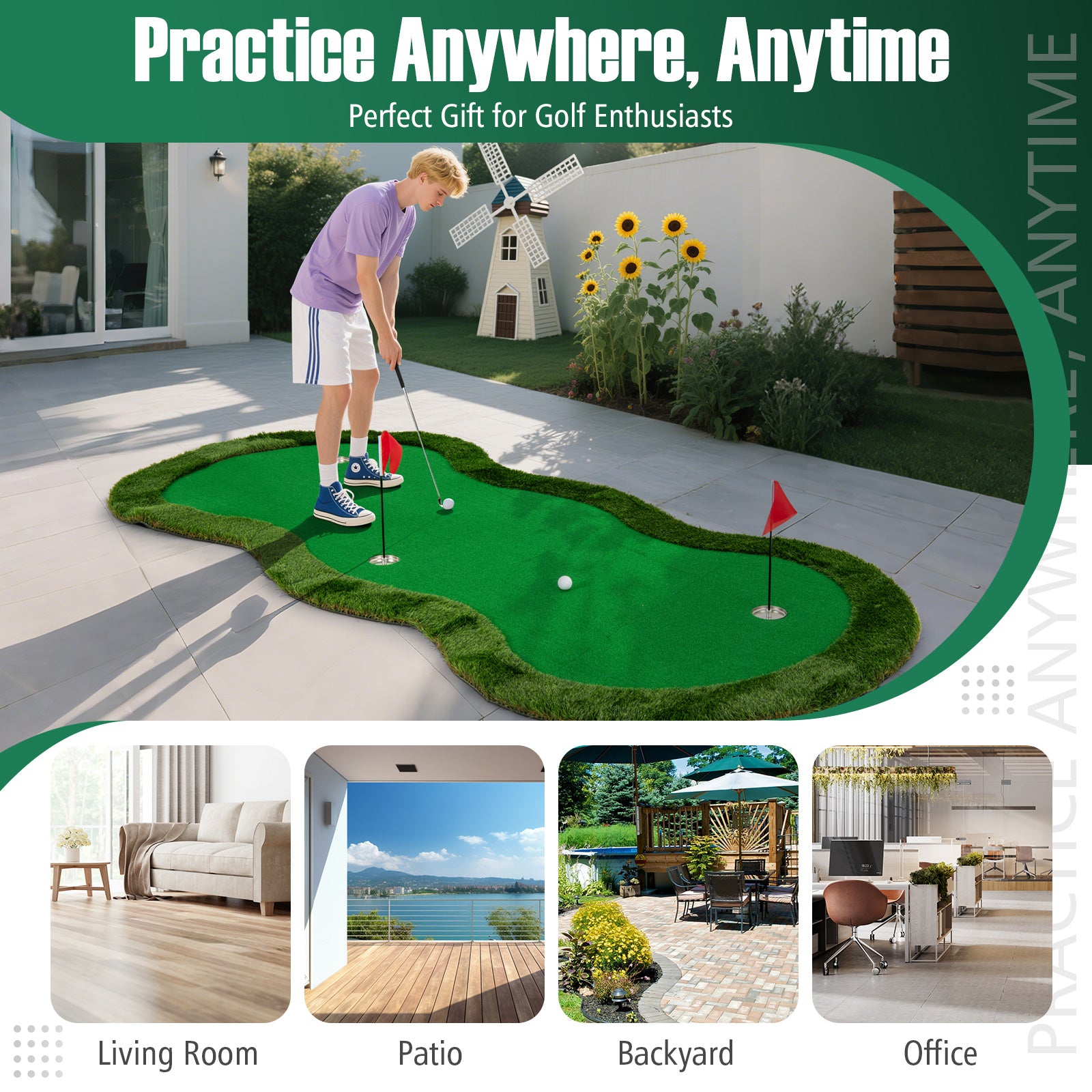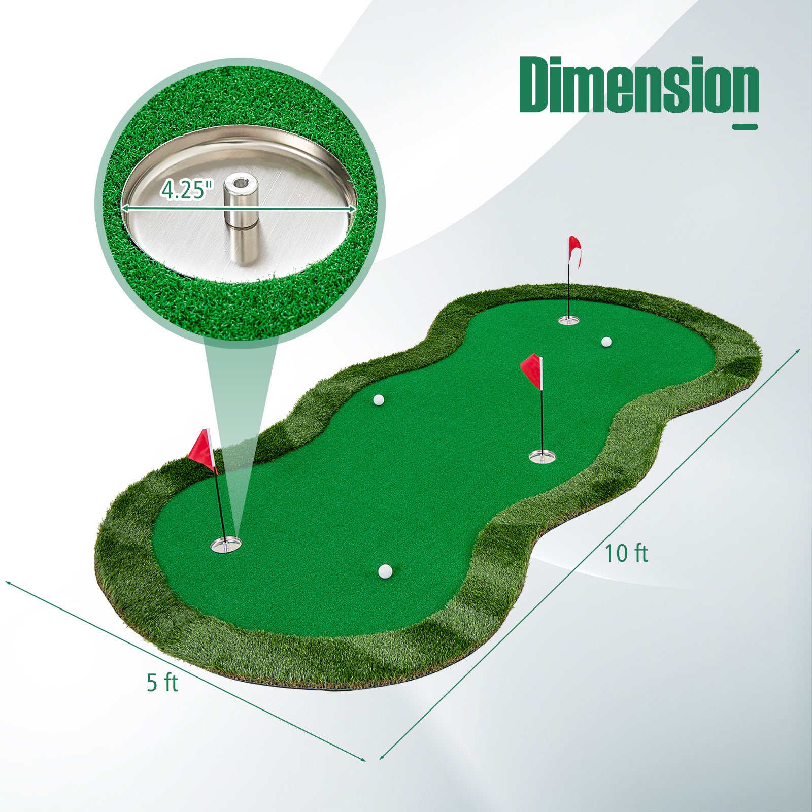 ULTIMATE 10FT Golf Putting Green, Realistic Feel Turf, w/ 3 Holes, 3 Flags & Cups, Golf Training Mat for Putting Practice Indoor Outdoor