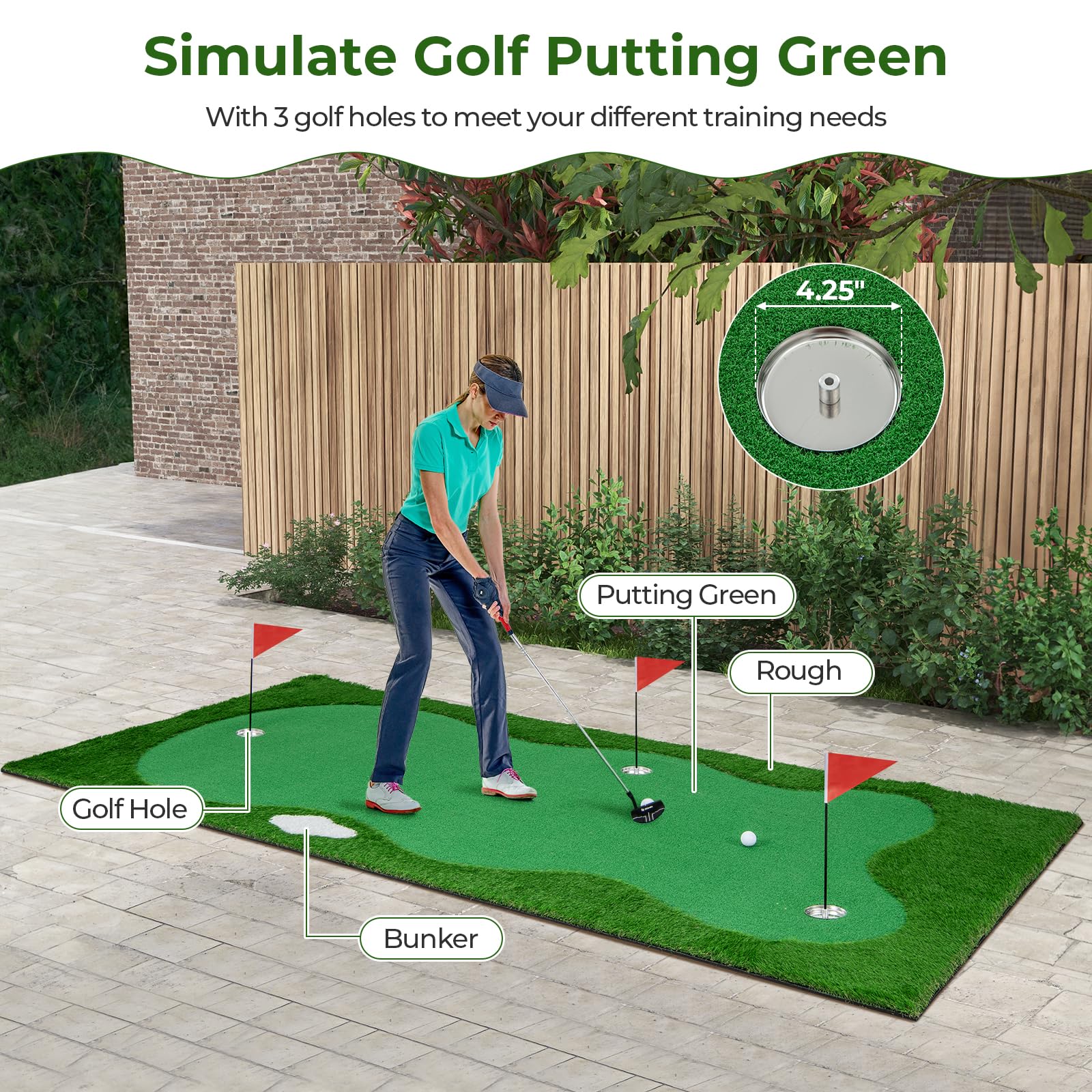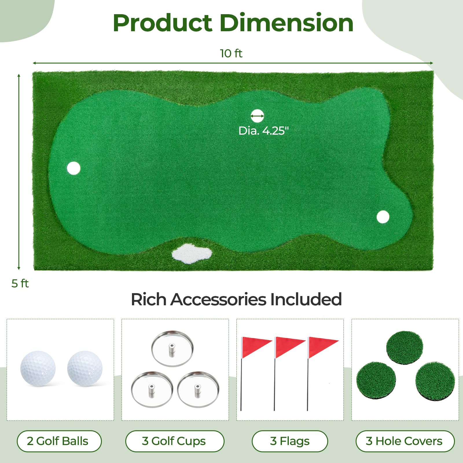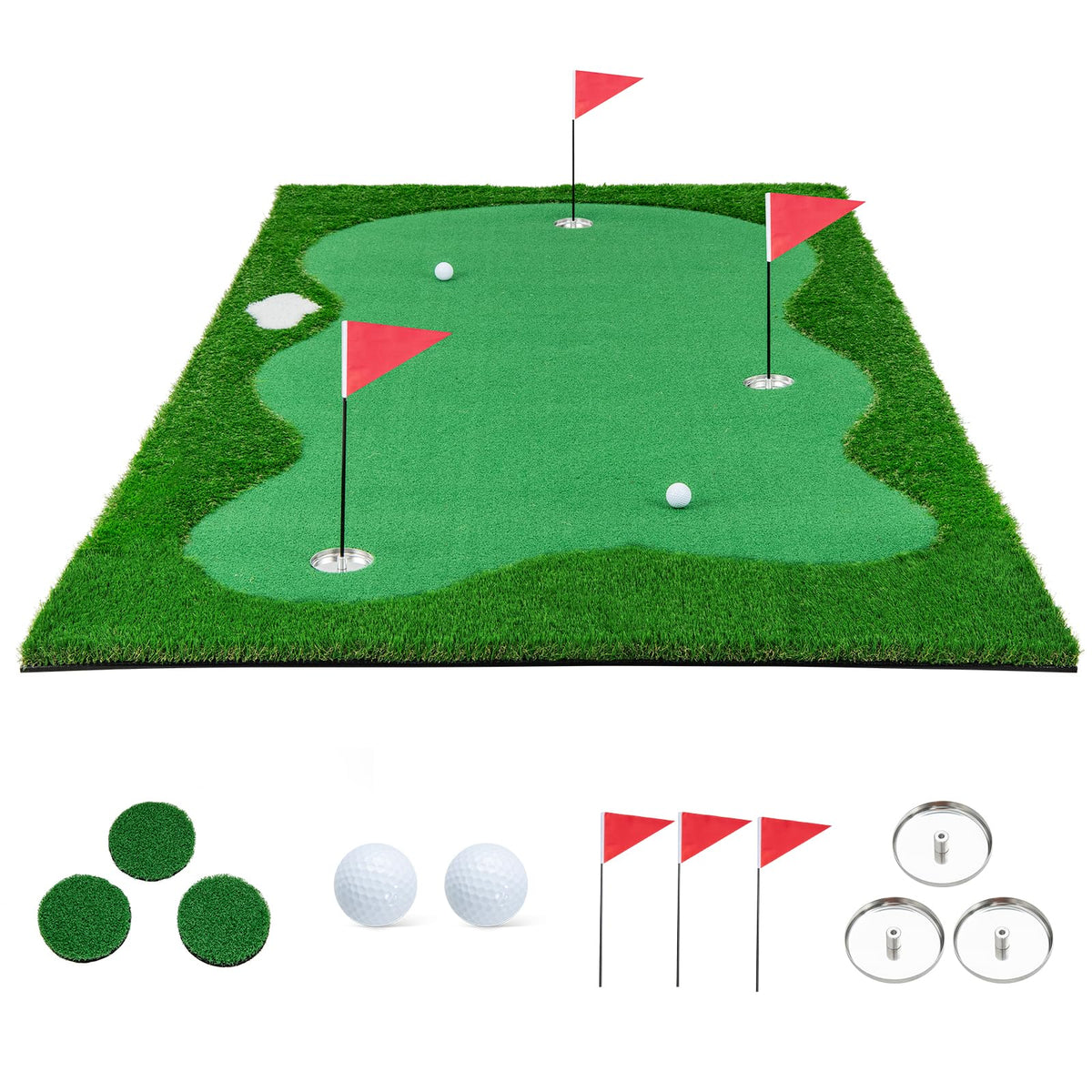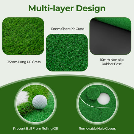 - 3 Golf Holes & Rich Accessories: Unleash your creativity and challenge yourself with the 3 golf holes and rich accessories included. It comes with removable plugs, cups and flags, so you can customize your putting scenarios to improve accuracy and enjoy a dynamic and engaging practice experience.