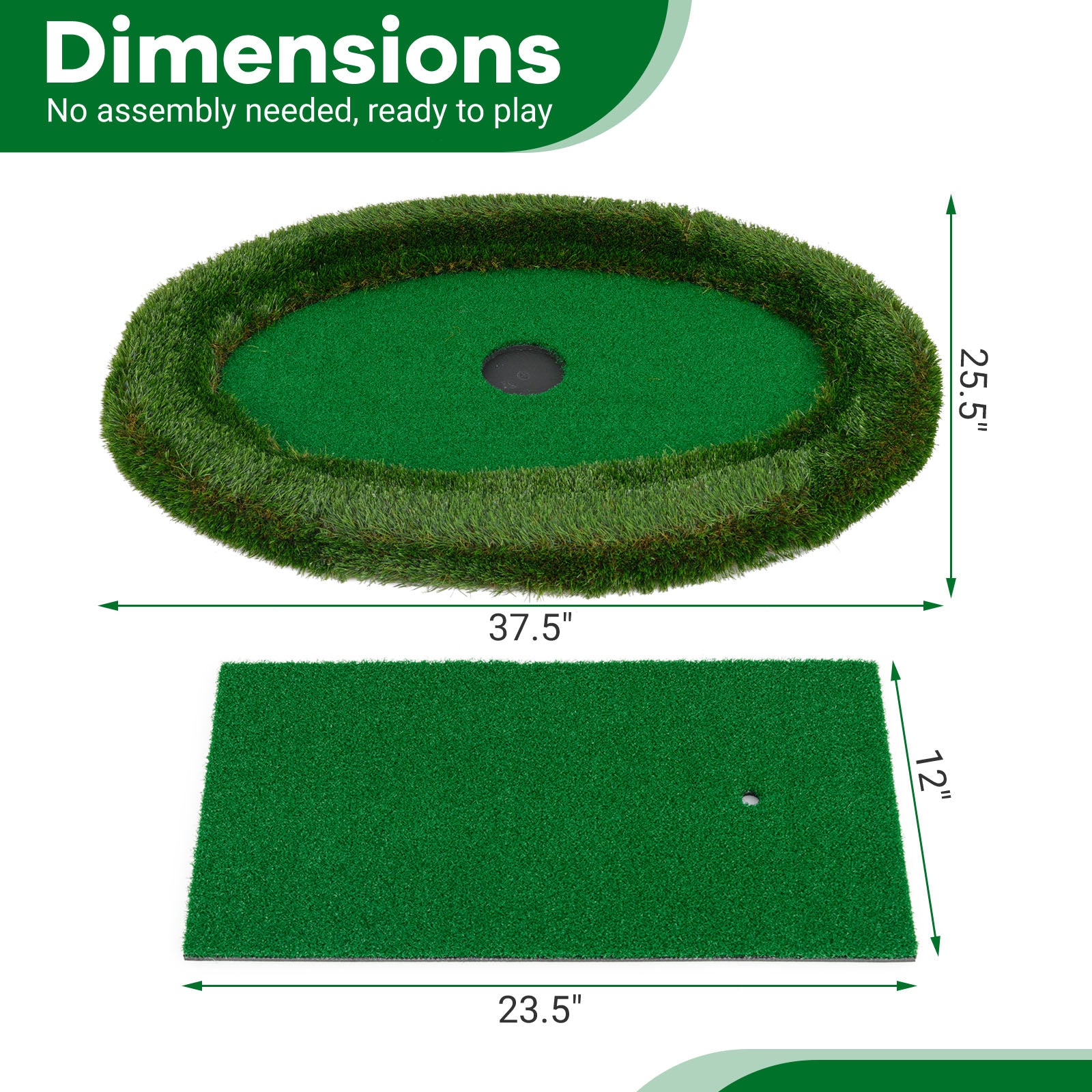 - High-Elastic EVA Base: Featuring a robust 0.4" thick high-density EVA backing, the floating golf green offers easy floating and high hit resistance, preventing golf ball from bouncing away. This golf putting mat also ensures an anti-slip and consistent play area for practice or games.