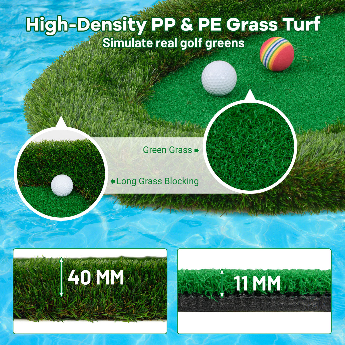 - Simulate Real Golf Greens: The high-density PP and PE grass turf offers a realistic feel of hitting and can withstand long-time use. Designed with long grass blocking, the floating mat effectively prevent the ball from rolling out of the pool golf green.