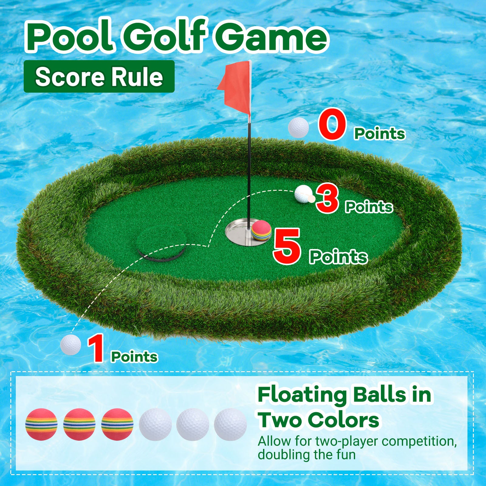 - Funny Golf Game: Not just for pool use, this portable golf green set can be the highlight of any outdoor space—from serene lakes and sandy beaches to your own backyard, providing endless fun wherever you choose.