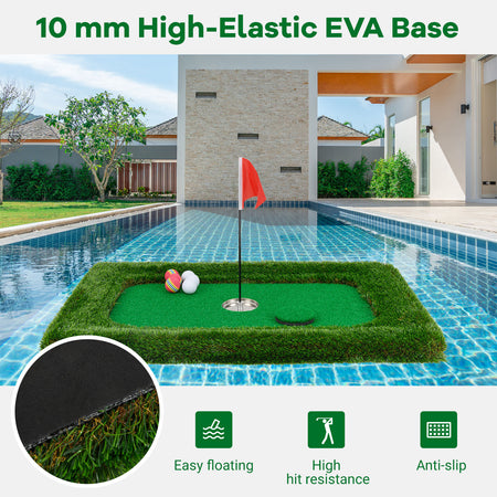 - High-Elastic EVA Base: Featuring a robust 0.4" thick high-density EVA backing, the floating golf green offers easy floating and high hit resistance, preventing golf ball from bouncing away. This golf putting mat also ensures an anti-slip and consistent play area for practice or games.