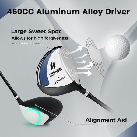 - Aluminum Alloy Clubhead: Our 460cc driver boasts a low center of gravity, allowing for easy launches, amplified control, and enhanced shot consistency. A large sweet spot increases forgiveness on off-center hits, while the alignment aid boosts accuracy, ensuring a superior gameplay experience.