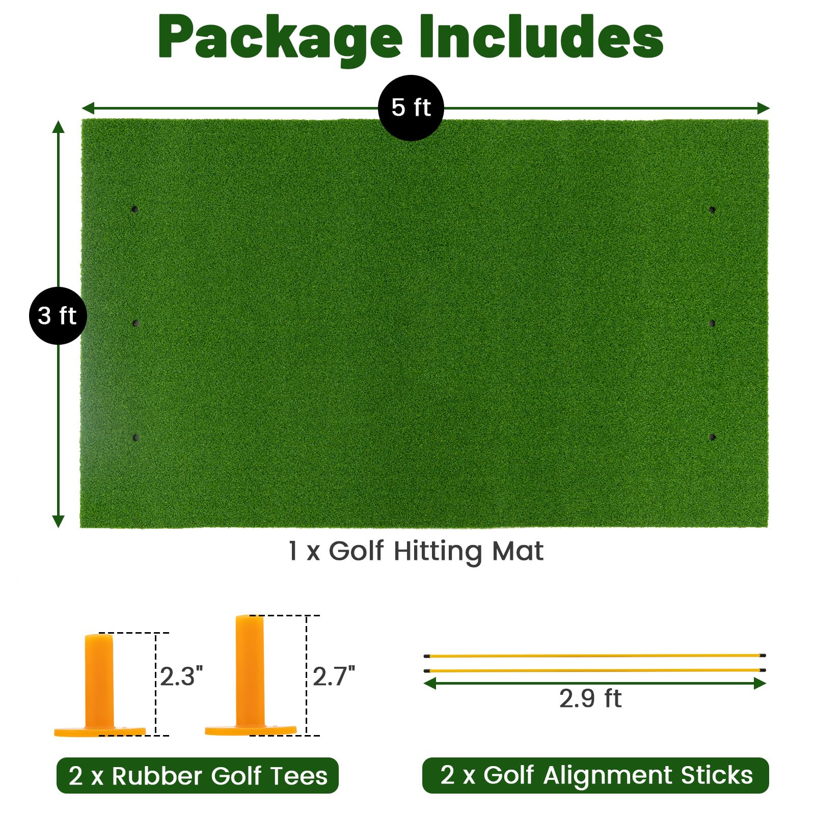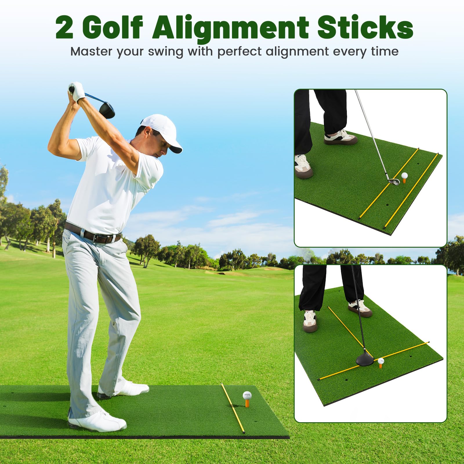 ULTIMATE Golf Hitting Mat, 5x3ft Golf Hitting Mat 25mm Thick w/2 Alignment Sticks & 2 Golf Tees