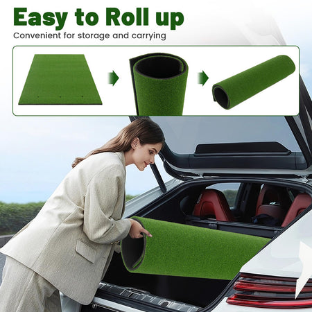 - ⛳【Practice Anytime and Anywhere】⛳This portable golf putting turf mat is easy to roll up for convenient storage and transport, allowing you to practice golf anywhere and at any time. Perfect for both indoor and outdoor use, including the backyard, patio, garage, basement, golf club, and more.