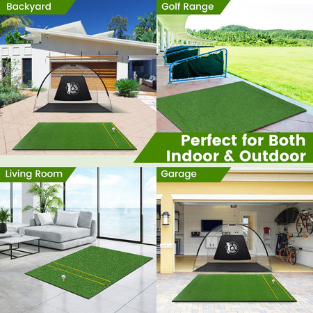 √ High-quality synthetic turf mimics real grass, offering realistic hitting feeling