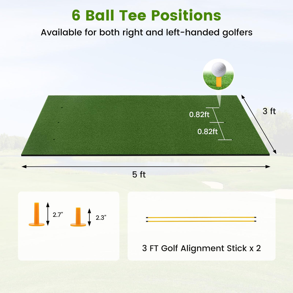 ULTIMATE Golf Hitting Mat, 5x3ft Golf Hitting Mat 32mm Thick w/ 2 Golf Rubber Tees & 2 Alignment Sticks