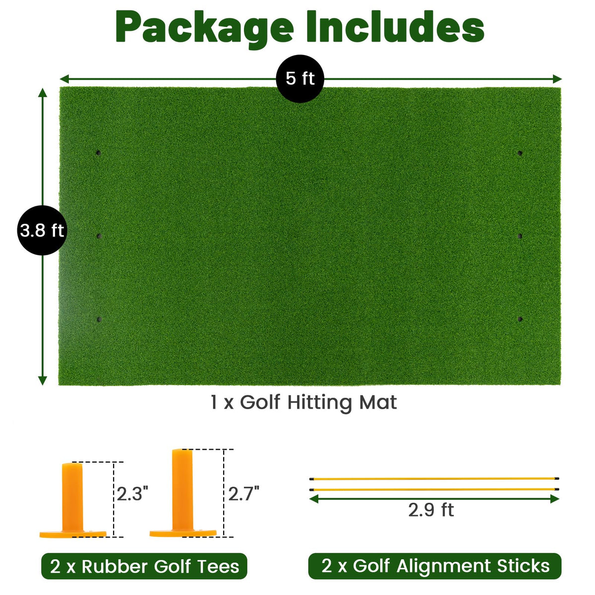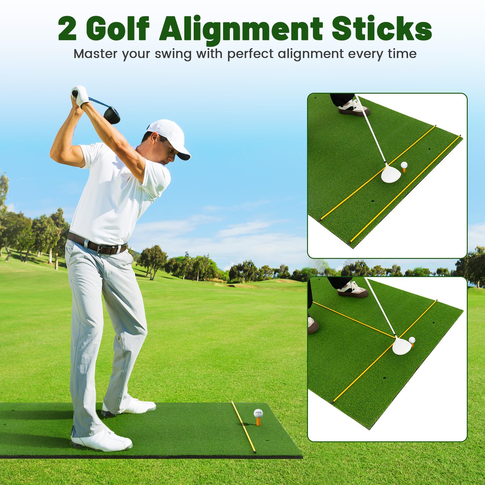 ULTIMATE Golf Hitting Mat, 5x4ft Golf Hitting Mat 25mm Thick w/ 2 Golf Rubber Tees & 2 Alignment Sticks