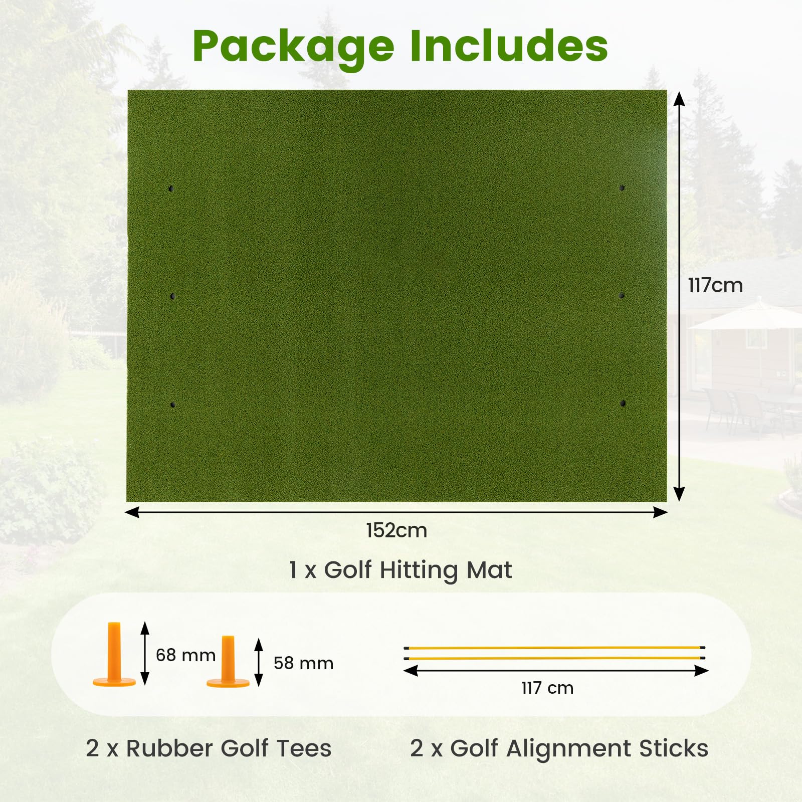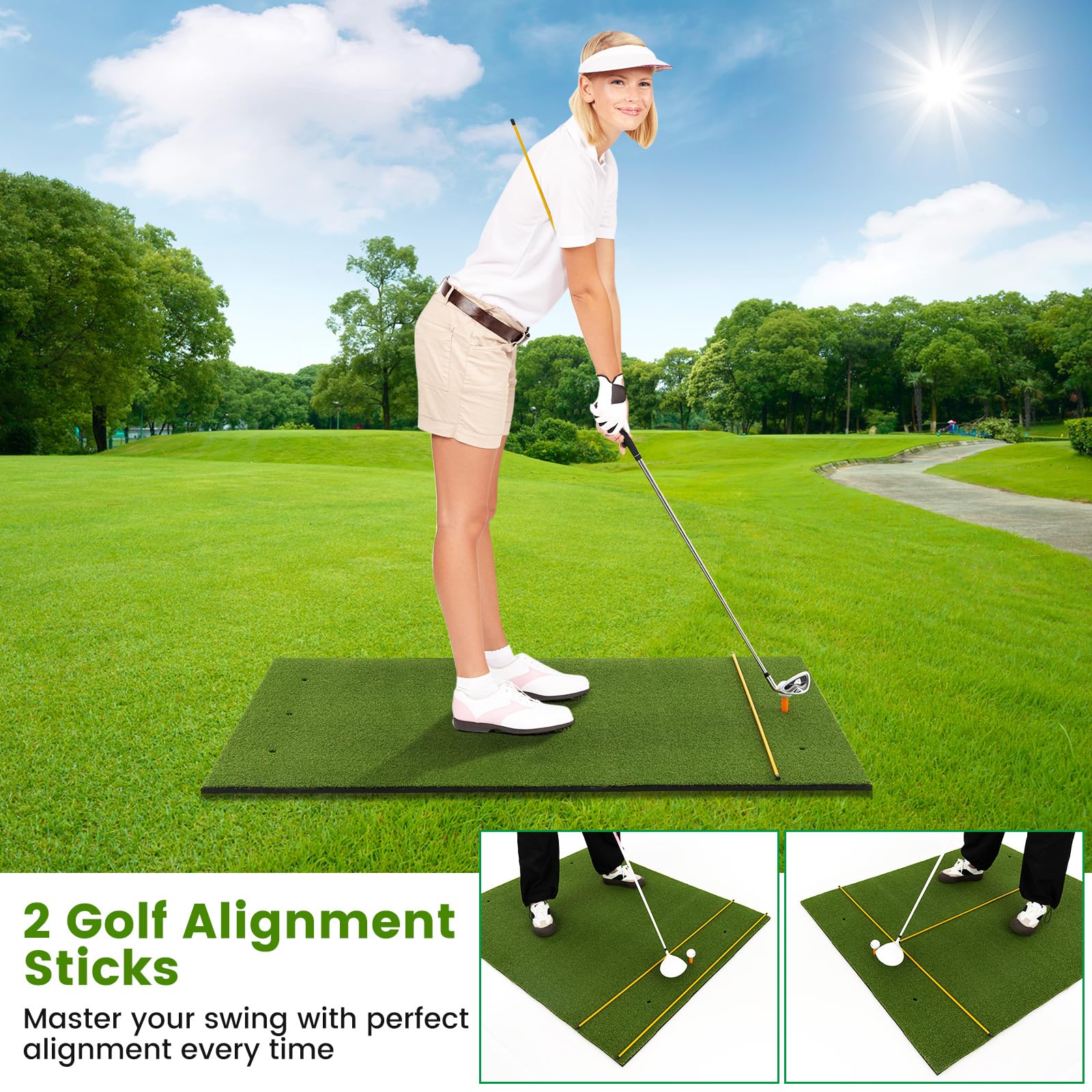 ULTIMATE Golf Hitting Mat, Artificial Turf Golf Practice Mat w/ 2 Golf Rubber Tees & 2 Alignment Sticks