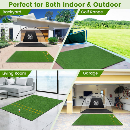 - ⛳【Practice Anytime and Anywhere】⛳This portable golf putting turf mat is easy to roll up for convenient storage and transport, allowing you to practice golf anywhere and at any time. Perfect for both indoor and outdoor use, including the backyard, patio, garage, basement, golf club, and more.