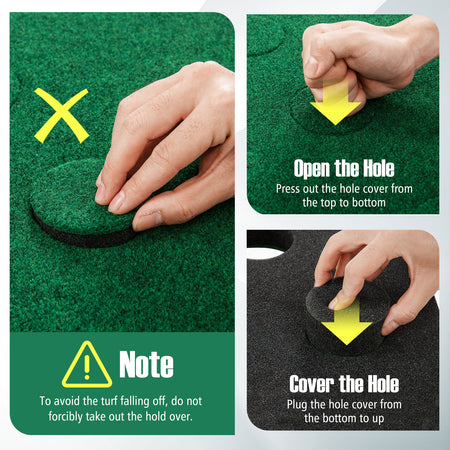 Note: To avoid the turf falling off, do not forcibly take out the hold over.