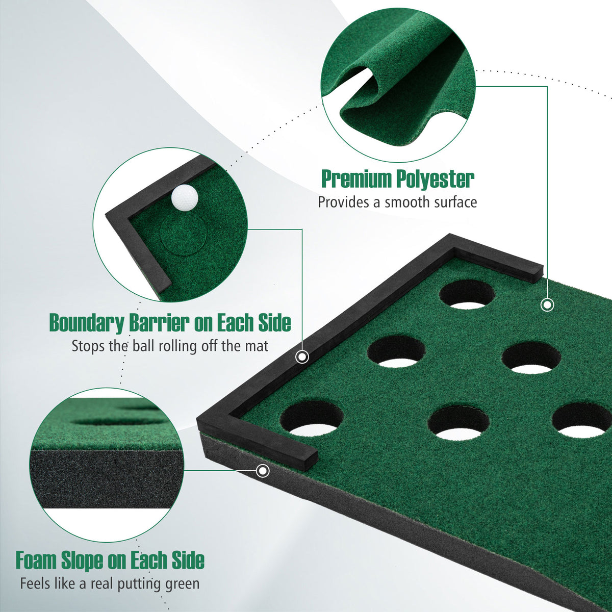 - Enhanced Game Experience: There are a slope and boundary barrier on each side of the mat, which feels like a real putting green. Moreover, the smooth surface ensures a consistent ball roll, while the anti-slip bottom increase stability during the game.