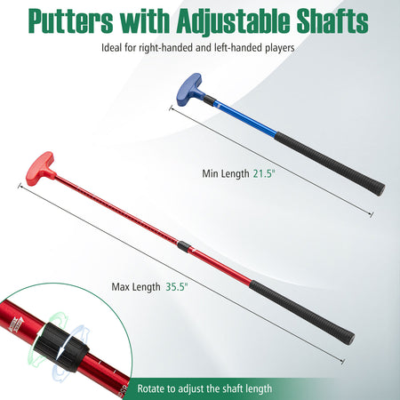 - Adjustable Putters for All Players: The 2 putters with adjustable shafts are perfect for children and adults, which are ideal for right-handed and left-handed players.