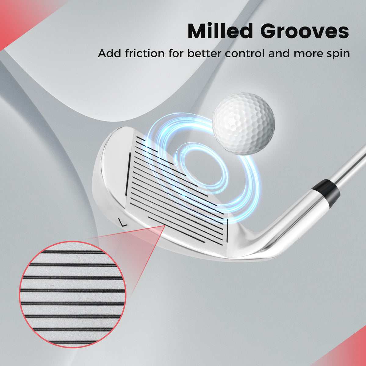 - Enhanced Forgiveness: Featuring a large sweet spot, the golf iron significantly increases forgiveness on off-center hits. Additionally, the milled grooves on the hitting face effectively add friction which boosts control and increases spin.