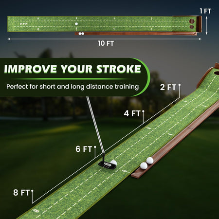- Suitable for All Skill Levels: Measuring 10 ft in length, this putting mat is perfect for practicing both short and long-distance putts, catering to golfers of all levels. Whether a beginner or avid golfer, this mat is designed to enhance your putting skills and makes a great gift for golf enthusiasts on various occasions.