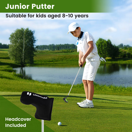 ULTIMATE Junior Mallet Putter for Right Handed, Kids Golf Club with Fiberglass Shaft, Rubber Hand Grip, Headcover, Golf Training Club for Boys and Girls