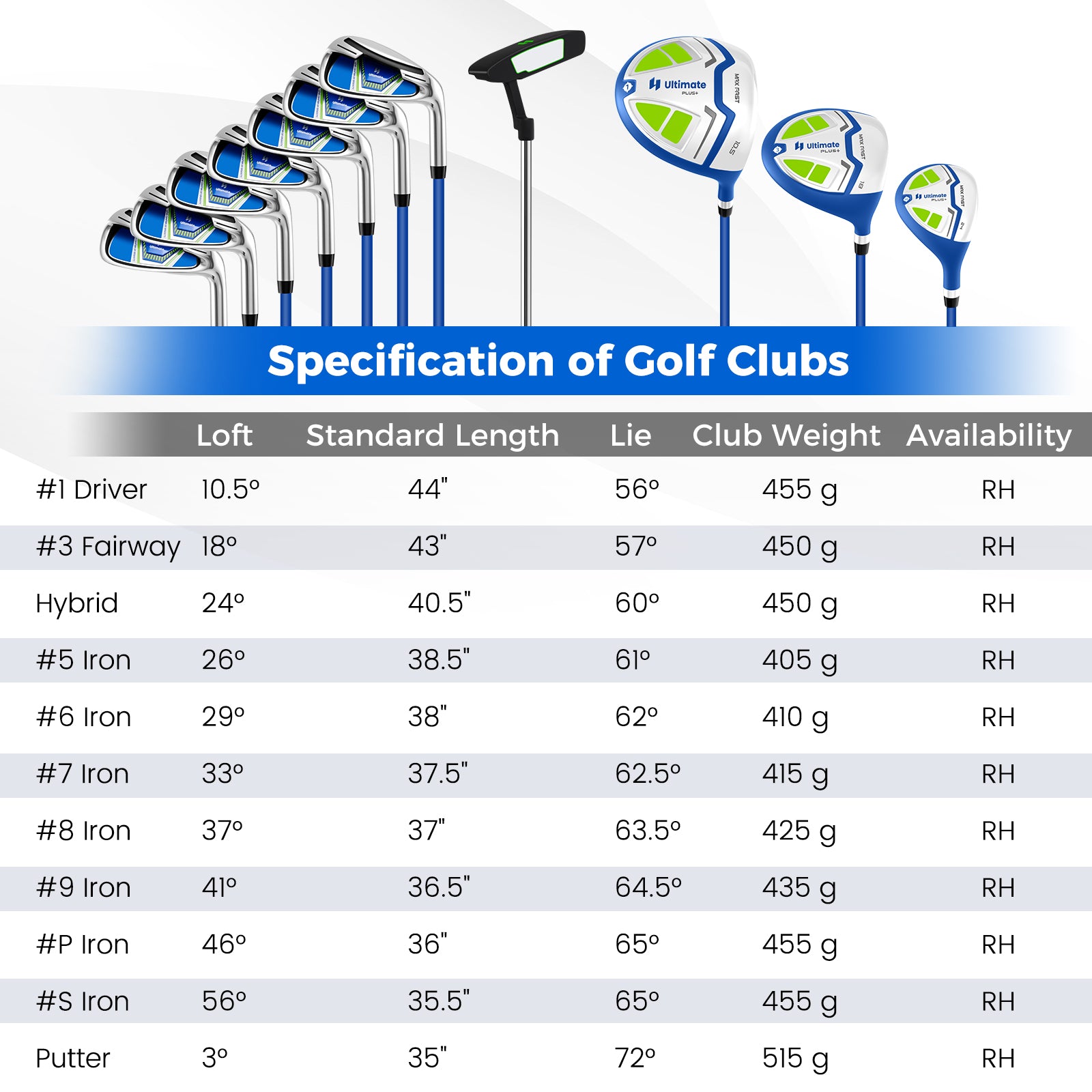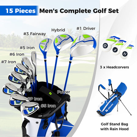 - Everything You Need in One Set: This 15 pieces men's complete golf set features a #1 driver, a #3 fairway, a hybrid, a full set of irons (#5 #6 #7 #8 #9 #P #S), a putter, 3 headcovers, and a stand bag with rain hood. It is ready to support your golf game right out of the box.