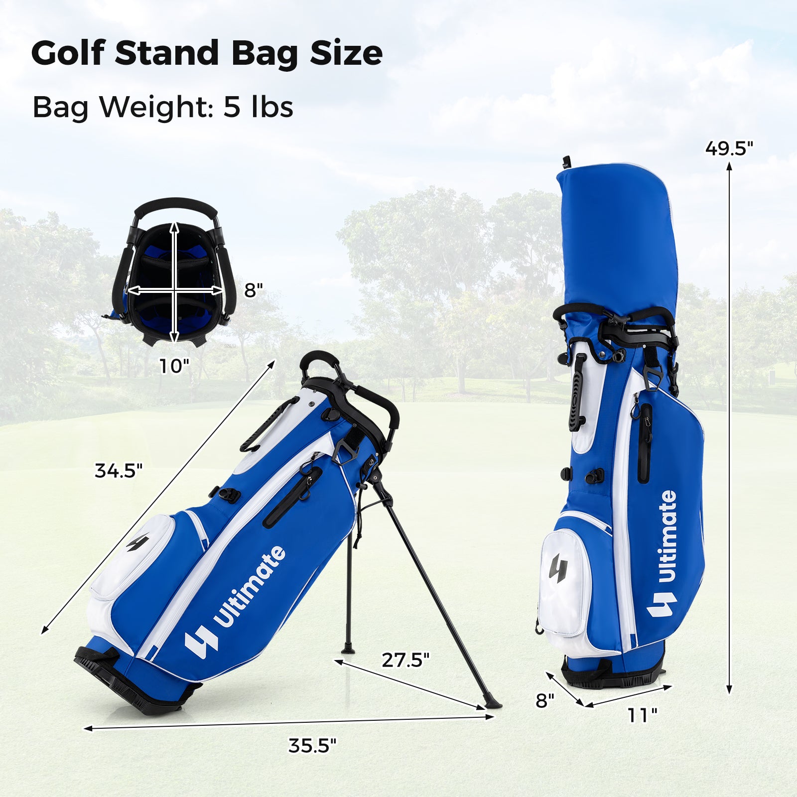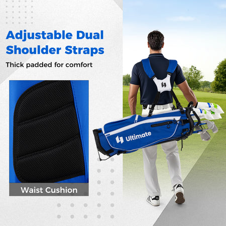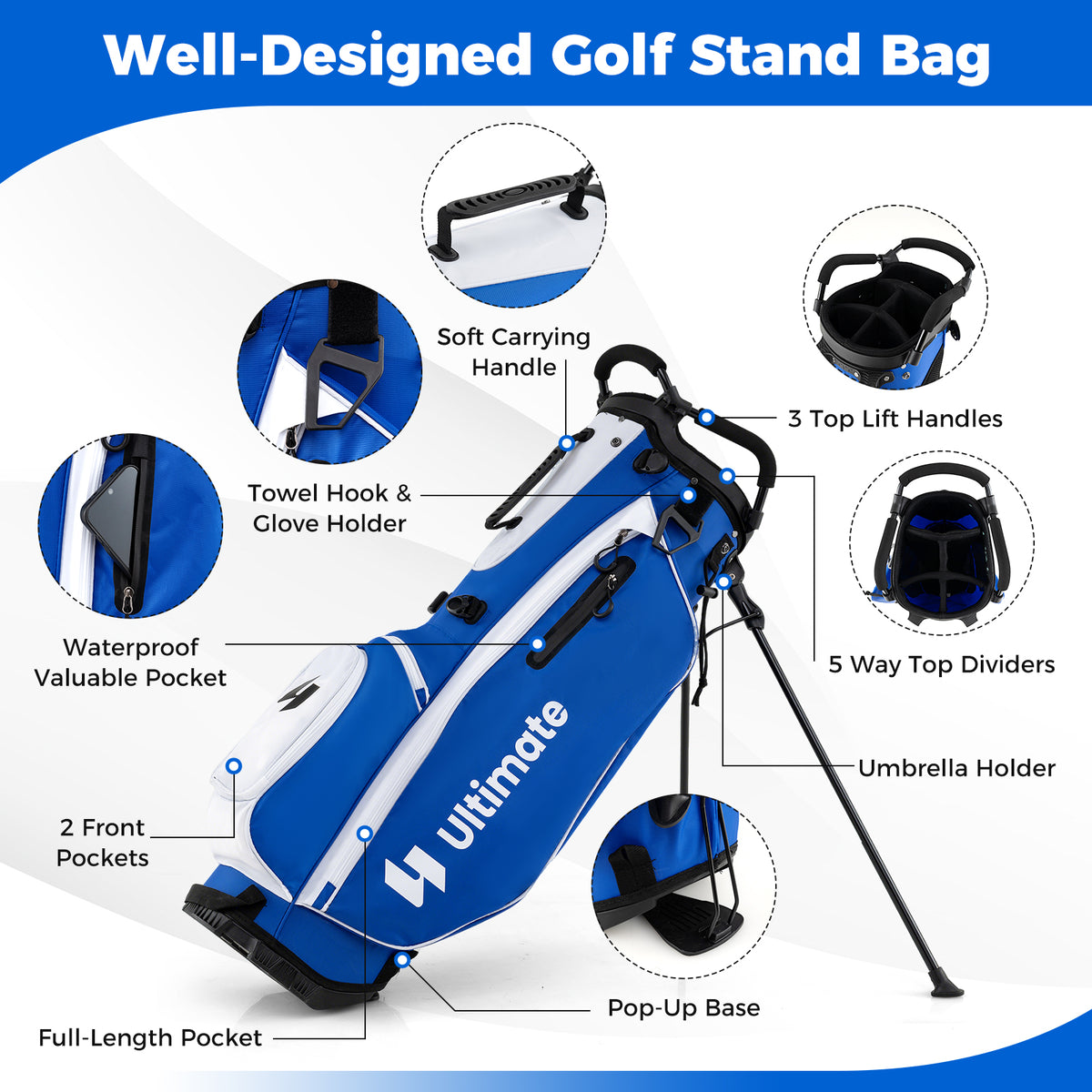 - Carry in Comfort & Style: The golf stand bag features adjustable dual shoulder straps and multiple handles for easy carrying. The 5 zippered pockets offer rich storage options, including a waterproof valuable pocket. The 7 way top dividers provide roomy space for all your clubs.
