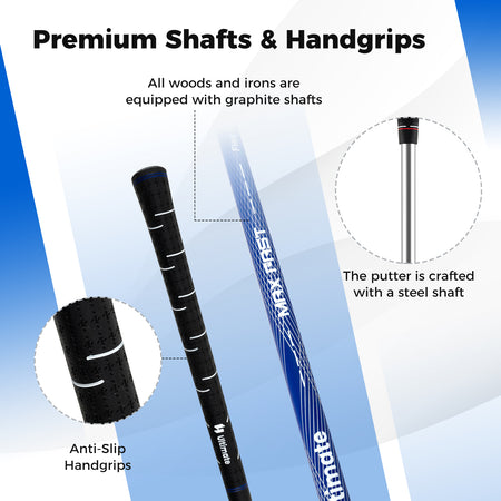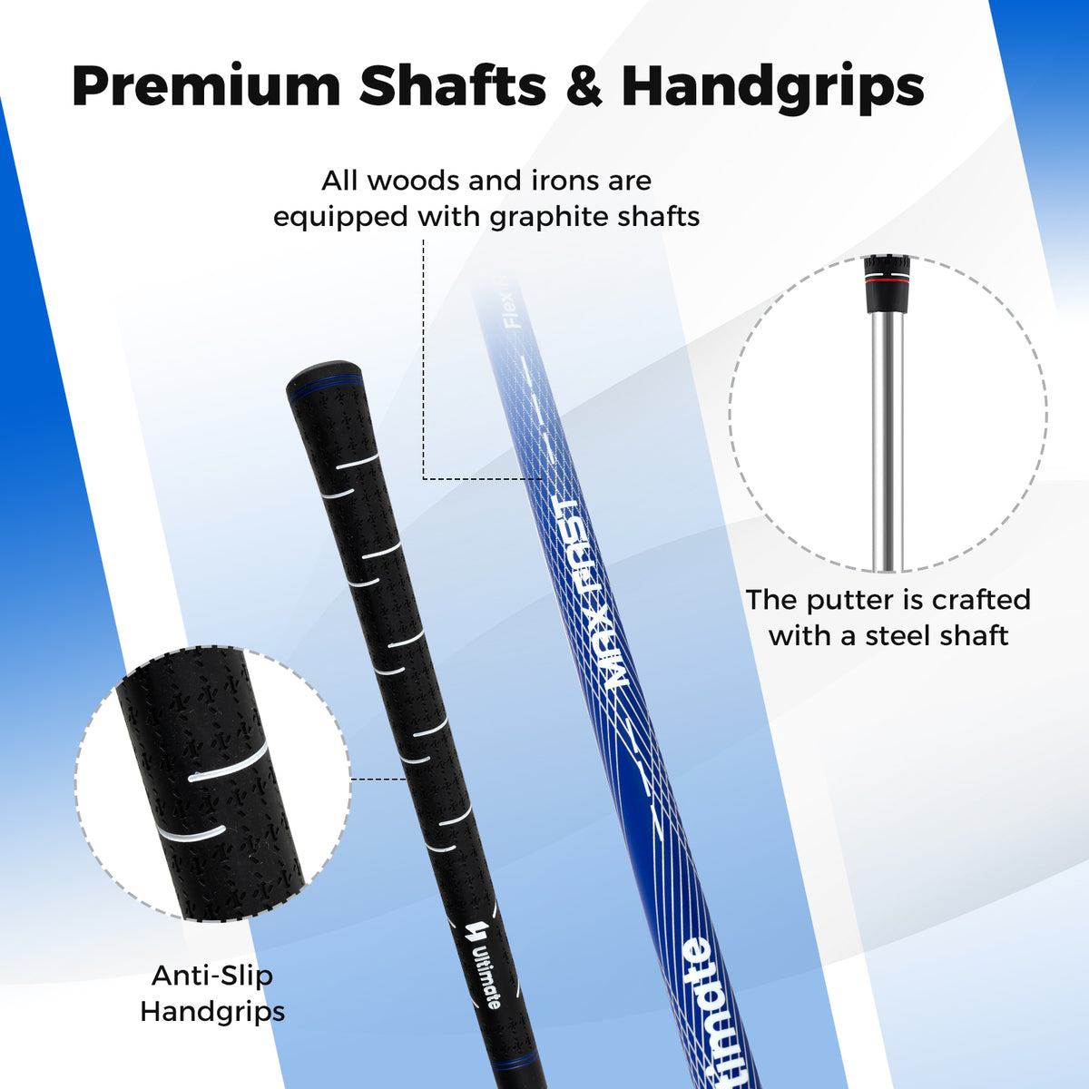 ULTIMATE Men's Complete Golf Clubs Set w/ Golf Stand Bag, #1 Driver, #3 Fairway, Hybrid, #5-9 Irons, PW, SW, Putter